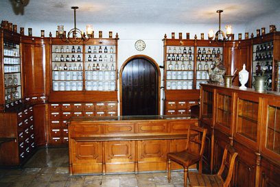 ist die Offizin aus der Biedermeierzeit. Weitere Apothekenräume wie das